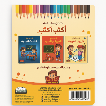 Aidez votre enfant à découvrir l’écriture arabe avec ce magnifique cahier issu de la série éducative “أكتب أكتب” publiée par Kitabuna.