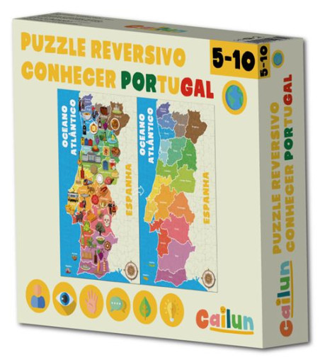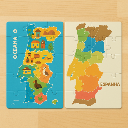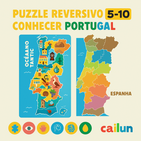 Puzzle Reversivo "Conhecer Portugal" : un puzzle éducatif 2-en-1 pour découvrir le Portugal tout en développant logique, motricité et mémoire. Parfait pour les enfants de 5 à 10 ans !