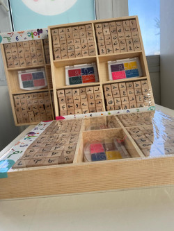 les 28 lettres de l'alphabet en bois à embellir selon vos goûts.