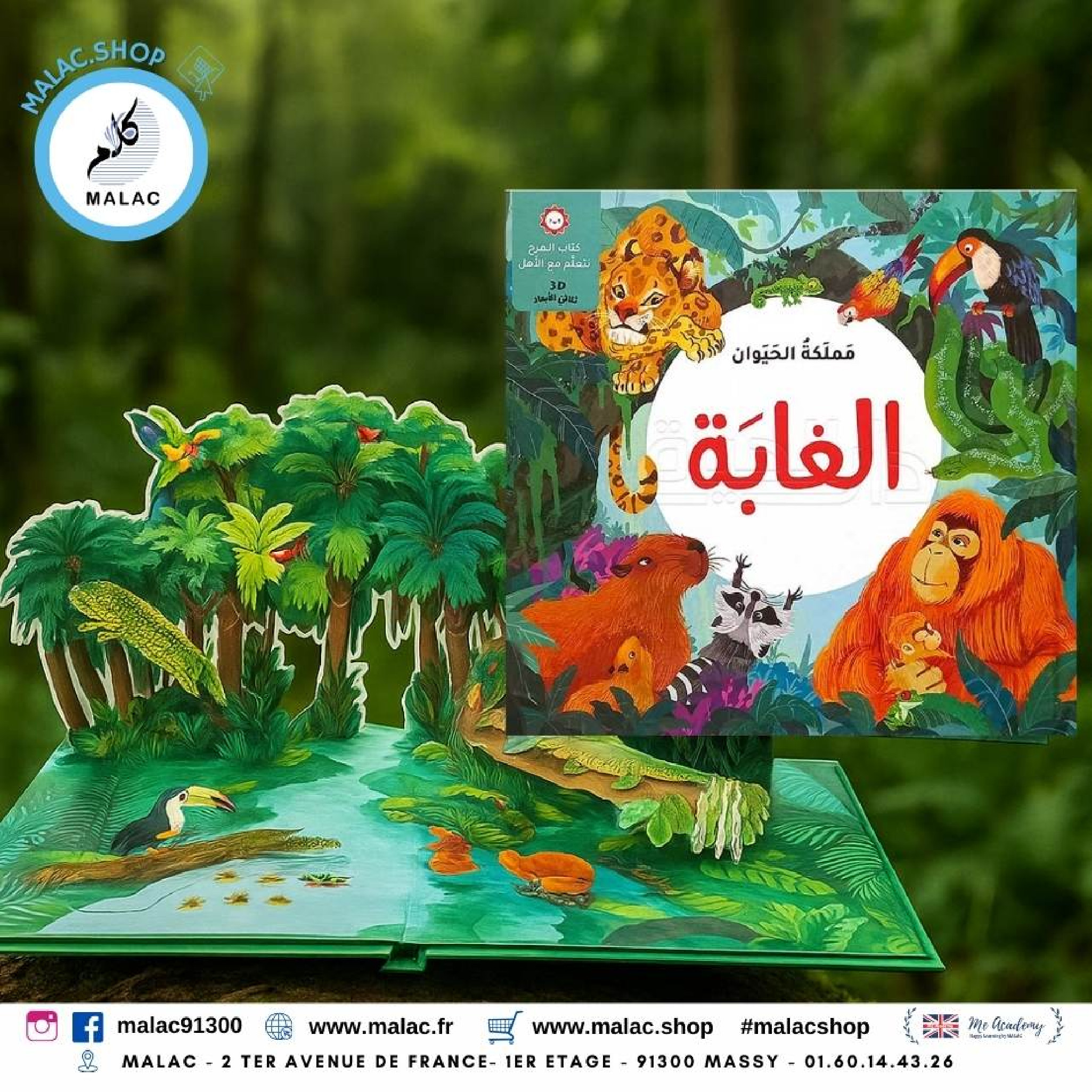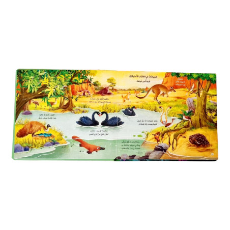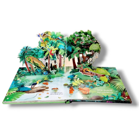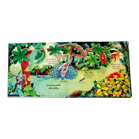 Ce livre en 3D plonge les enfants dans عالم الغابة (le monde de la forêt). Grâce à des illustrations colorées et vivantes, l’enfant découvre les animaux de la forêt tout en apprenant des mots simples en arabe.