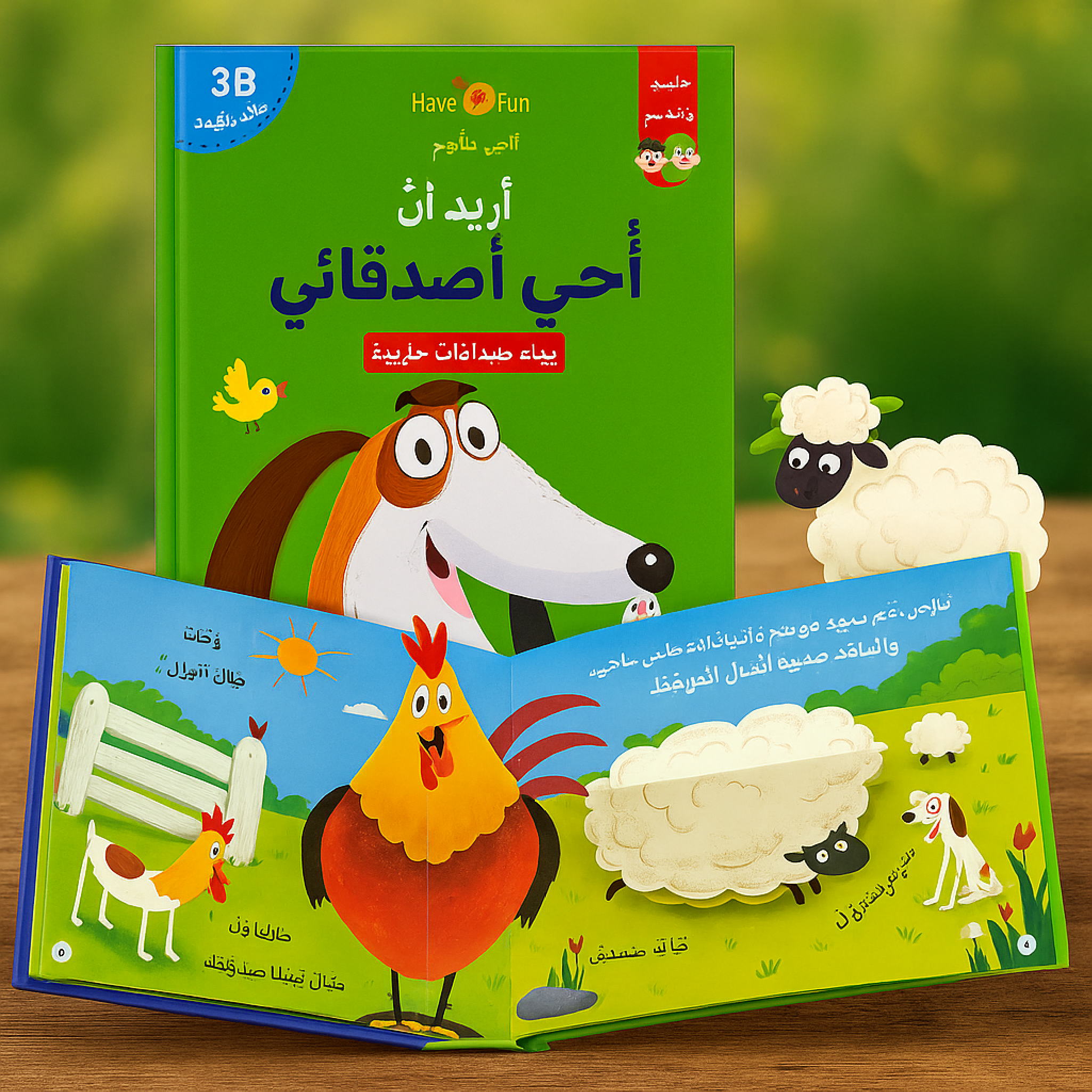 Cette collection d’histoires tridimensionnelles a été conçue pour aider les enfants à apprendre la langue arabe de manière naturelle, ludique et immersive. Chaque récit place l’enfant au cœur d’un univers visuel vivant, dans lequel les personnages parlent et interagissent avec des mots arabes simples et faciles à retenir.
