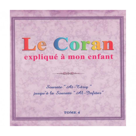 Ce tome 4 de la collection "Le Coran expliqué à mon enfant" apporte les réponses que vos enfants se posent sur le Coran et l'Islam. Il les guide tout au long de leurs apprentissages des 5 sourates suivantes : "At-târiq" (L'Astre Nocturne), "Al-boroûj, "Al-inchiqâq", "Al-moutaffifîne" et "Al-infitâr" (La Rupture).