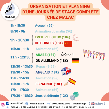 Garde possible à partir de 8h00 le matin, et jusqu'à 18h00 le soir (en supplément).
